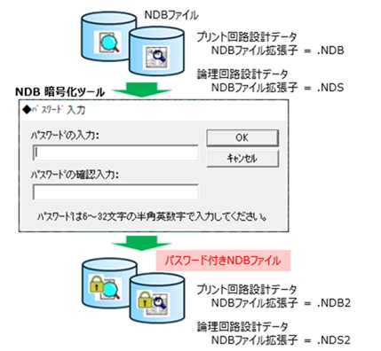 本システムに付属の「NDB暗号化ツール」を使用して、NDBファイルに任意のパスワードを設定し、暗号化することができます。
