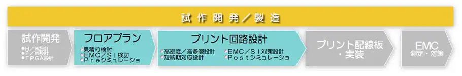 プリント回路設計の前段で、生産性、EMC/SI検討、レイアウト検討を実施し、問題点の事前解決と見積り(コスト、日程)の事前提示及び高品質のプリント回路設計をご提供します。