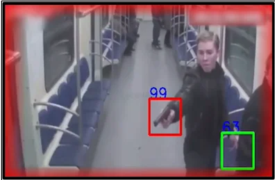 手に持っている危険物を検出(赤:危険) -