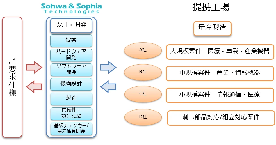 OEMサービスでは、量産製造以降のサービスでお請け致します。